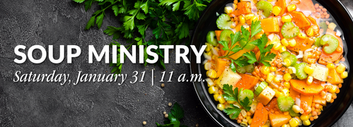 Planning is underway for our annual Soup Ministry, which will take place on Saturday, January 31st. Please bring warm, homemade vegetable soup in crockpots, and we will mix together at 11 a.m. Corn bread or muffins are needed, as well as volunteers to take the soup.