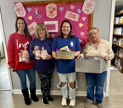 67 residents of Nancy Hart Nursing Center received individual bags of goodies and staff received baskets of snacks for Valentines Day. Helping deliver items were Jeana and Chloe Henderson and PJo Phelps. Thank you to all who assisted with items and monetarily!
