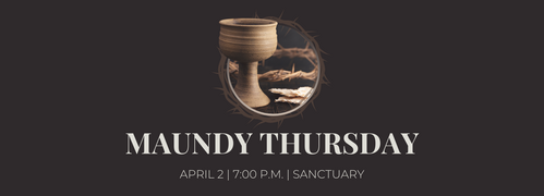 Thursday night at 7 p.m. in the Sanctuary, we will have a worship service with music, scripture, and holy communion - mediating on the suffering of Christ. It is an important service in the life of the church, and we hope everyone can be present.